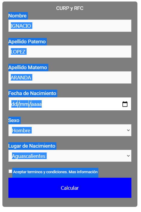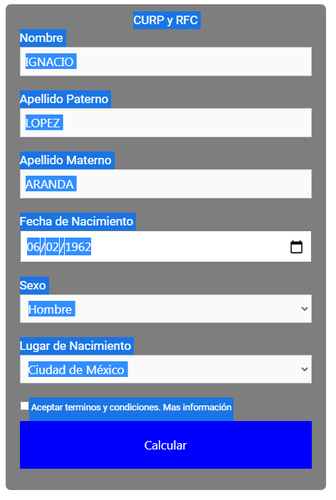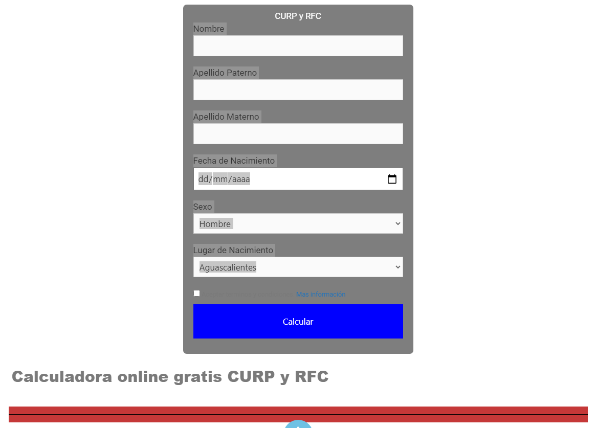 Calculadora online gratis CURP y RFC