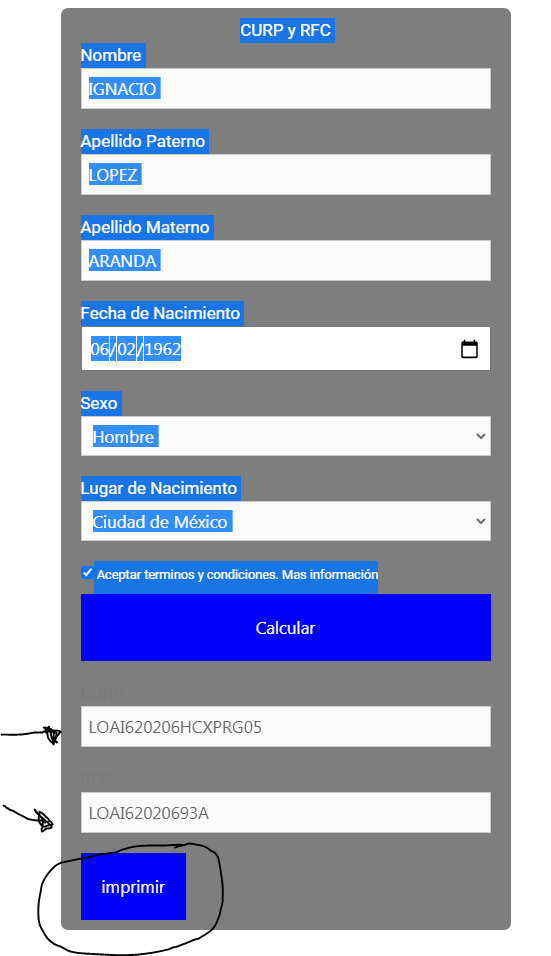Generador de Curp y RFC gratis.